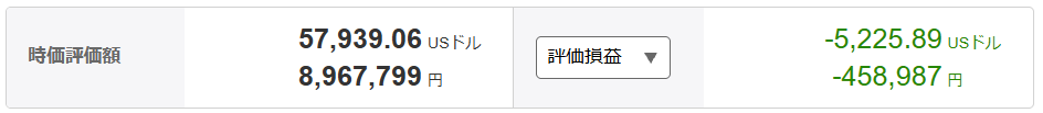 評価損益額合計-$5,225.89(前回比+$3,050.73)