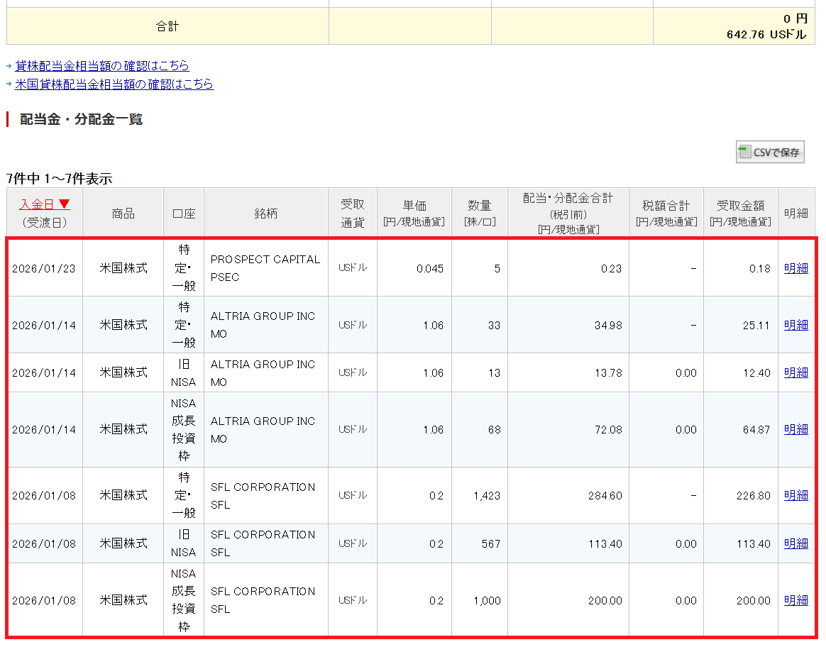 2026年 配当金7回目は特定・一般 PROSPECT CAPITALで