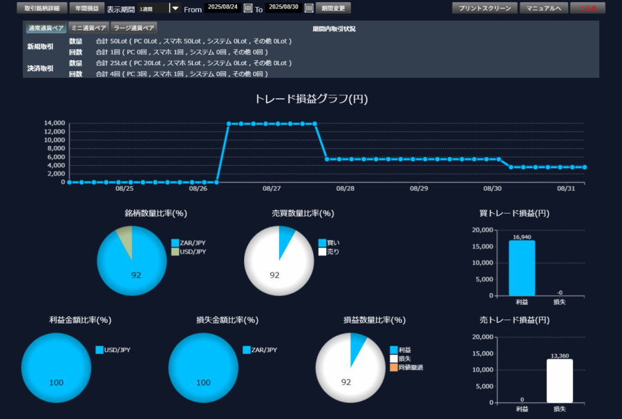 期間内の利益は +3,580円だった。(スワップ含まず)